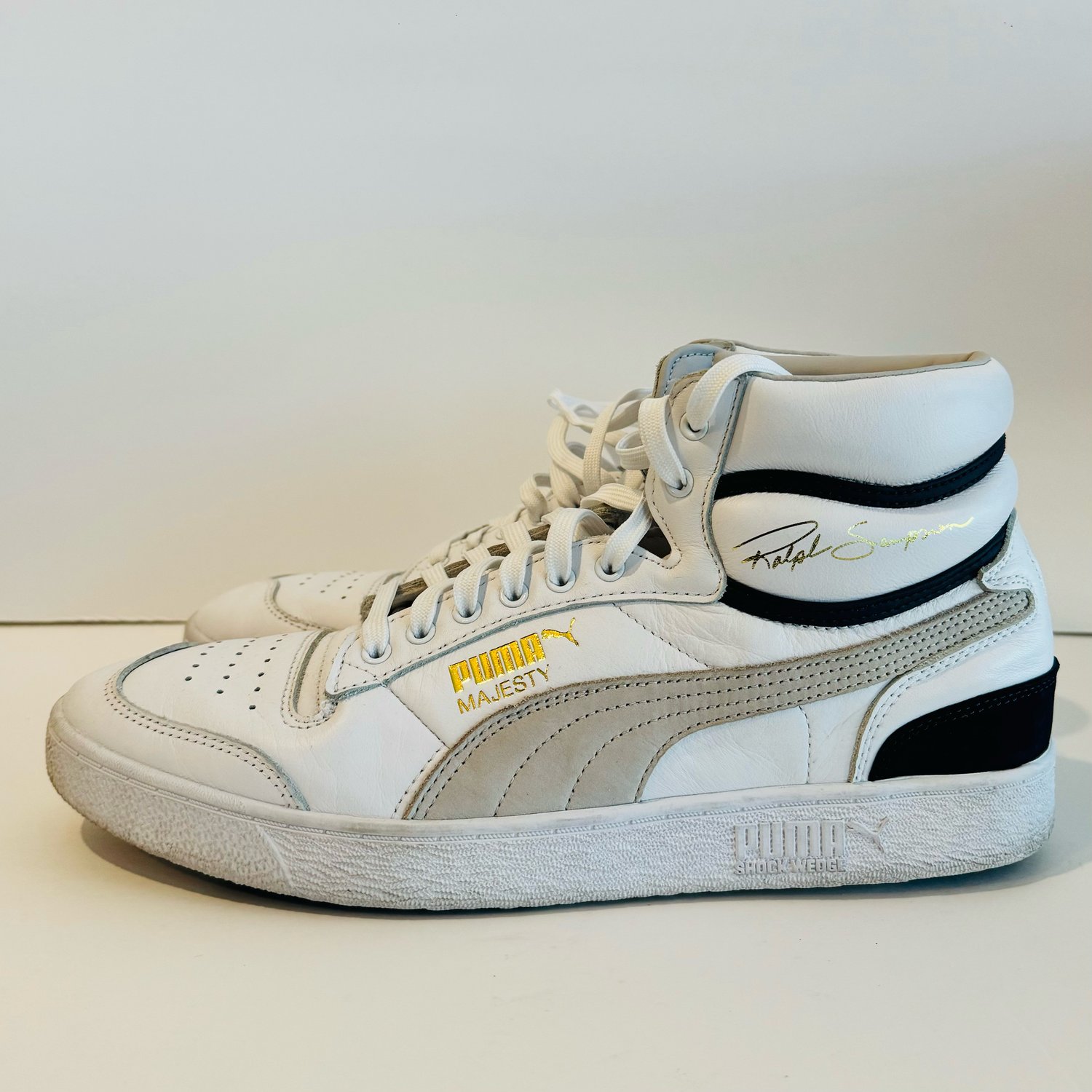 Classic Ralph Sampson OG. Returning in both high and low-top cuts, Sampson’s signature shoes both take on a white, grey, and navy color scheme, with the former color providing a crisp leather base, while the latter duo arrives in rich suedes to provide accents on each pair’s formstripe graphic and heel.